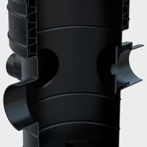 1200mm diameter, single piece – factory built units, delivered to site ready to install. All OFCP1050 units feature a robust, heavily profiled- rota moulded base and an impact resistant, twinwall body, with a choice of main channel pipework diameters from 110mm EN 1401 to 450mm twinwall, with extra inlets available on request and a choice of positions from 90° to 270°.