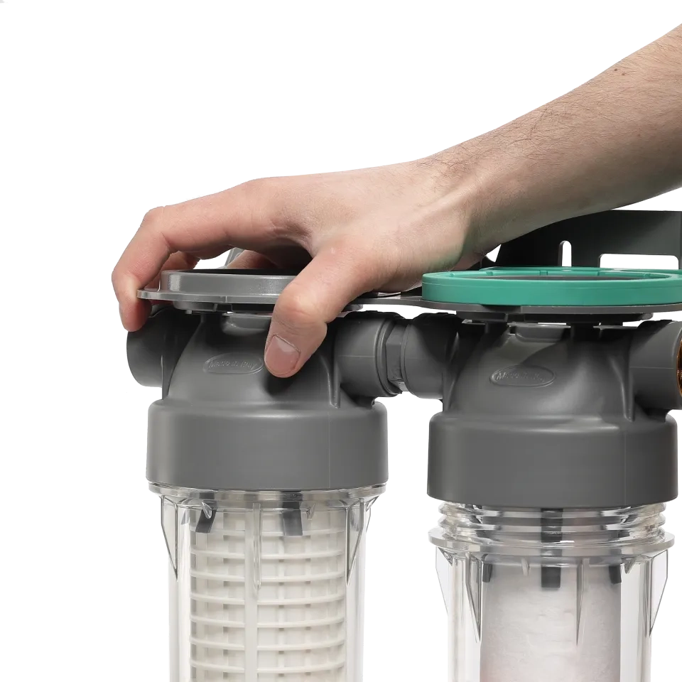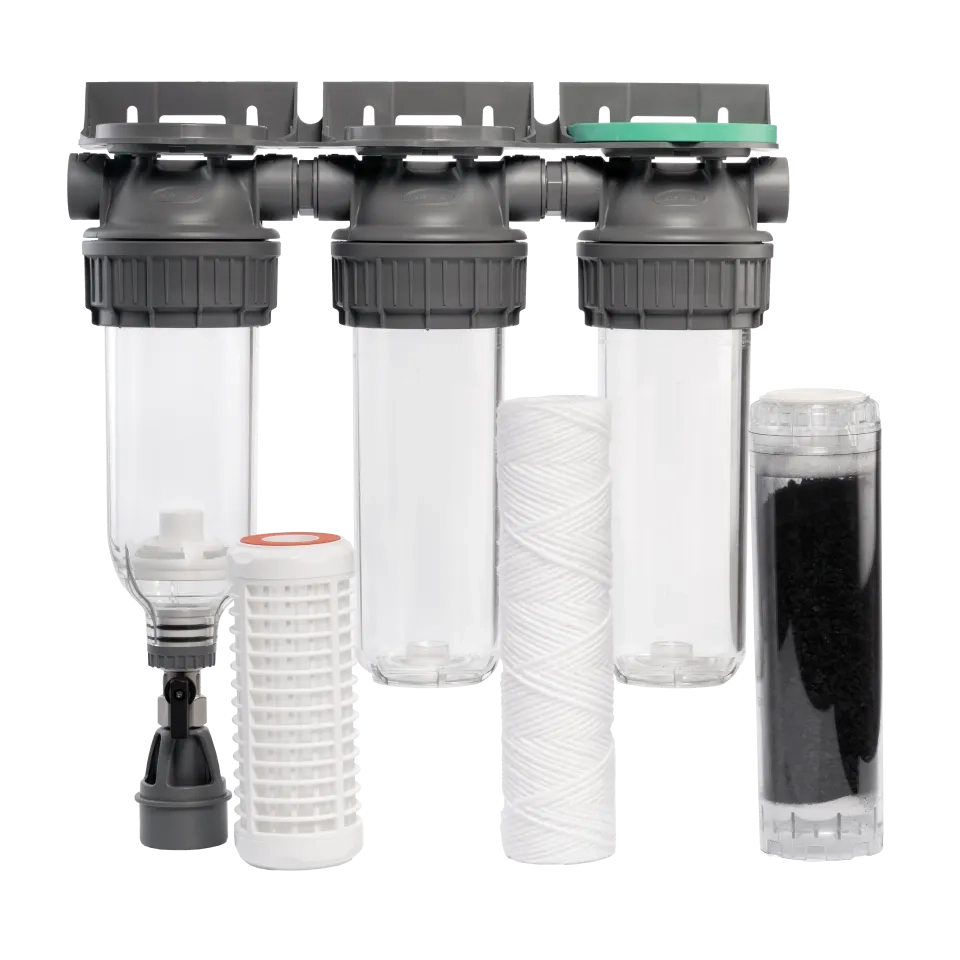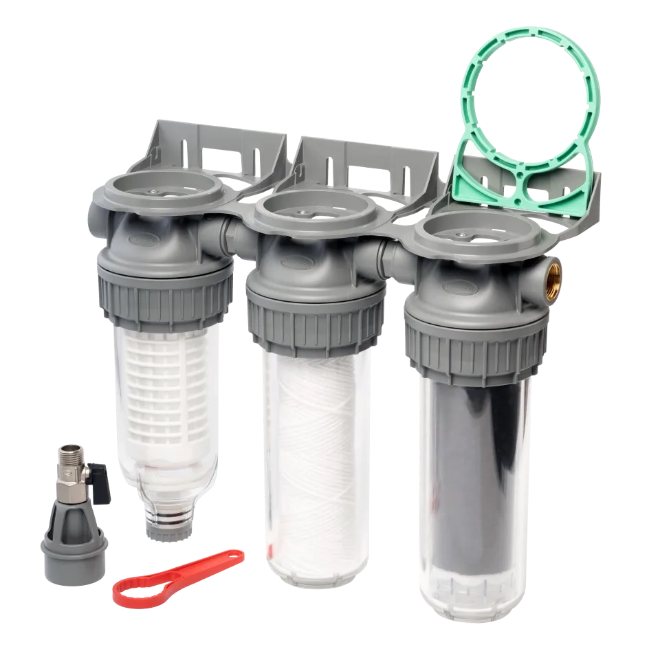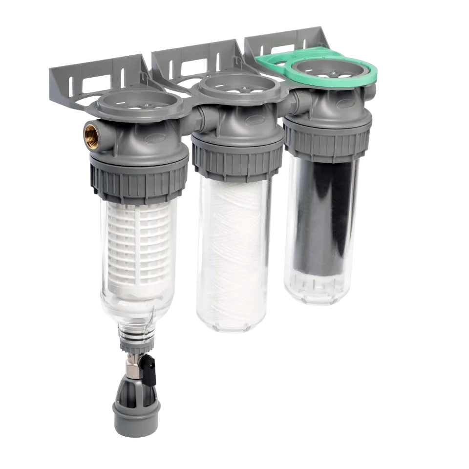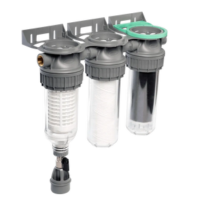 Grey Triplex 10" Rainwater Filter with Flush Valve
