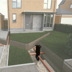 - Optional Side Inlets: 110mm Single wall EN 1401 - Inlets at 90° and 270°