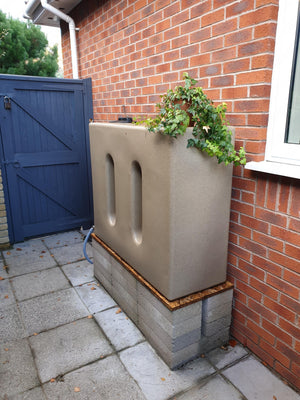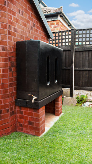 This tank must be raised on a plinth, typically a few bricks and paving slabs to use the full capacity of the water tank. Alternatively, consider a heavy duty water butt stand here.