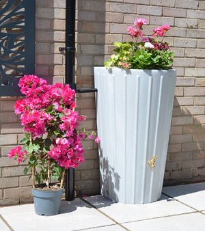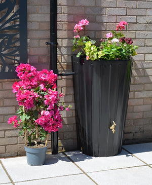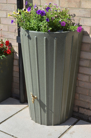 A water butt planter that makes a wonderful garden feature. Manufactured here in the UK using a tough, durable type of MDPE which is weather resistant and long lasting.