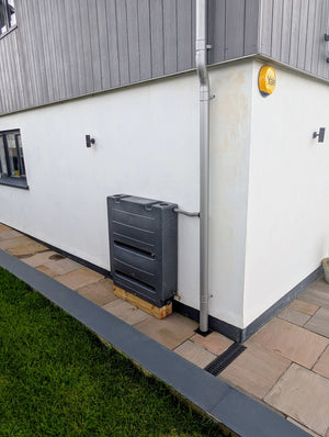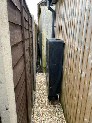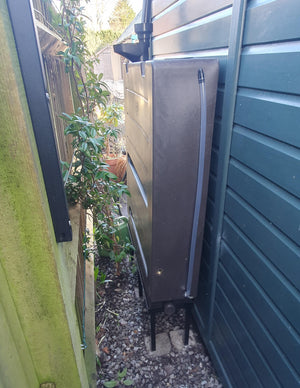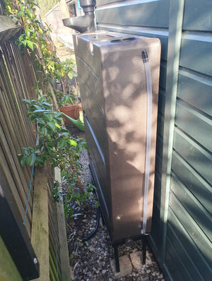 The Classic Slim 250l Rainwater Tank can be place directly on the floor, raised on a stand/plinth or wall mounted.