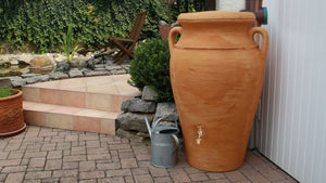 This highly realistic imitation of a Greek urn will add style and elegance to any garden. It looks like it's made from real terracotta. The classy design disguises its function as a water butt.