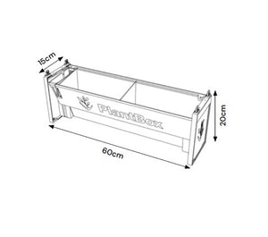 - PlantBox dimensions: 60cm (length) x 20cm (height) x 15cm (deep)