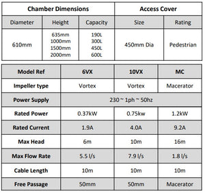 Vortex Micro Sewage Pumping Station Range 190l, 300l, 450l and 600l